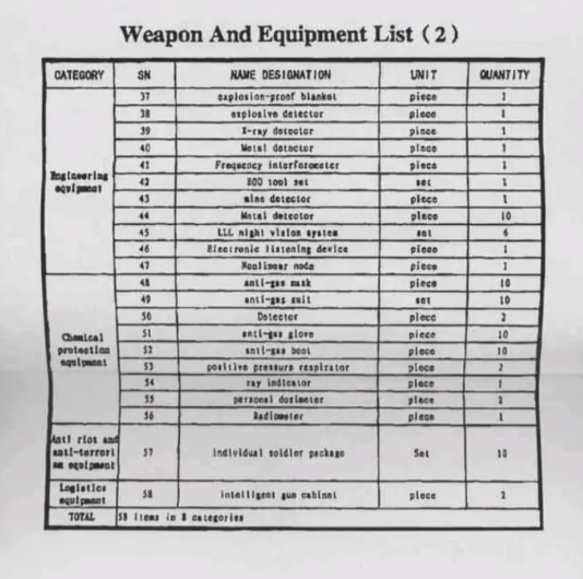 Ambasada chińska zwróciła się o zgodę na uzbrojenie każdego członka zespołu bezpieczeństwa w pistolet automatyczny 9 mm i karabin automatyczny. Na liście broni do sprowadzenia znajdowały się również dwa karabiny maszynowe i karabin snajperski, a także amunicja do całego sprowadzanego arsenału.