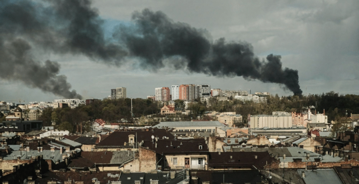 Wcześniej tego dnia rosyjskie ataki rakietowe na zachodnioukraińskie miasto Lwów w pobliżu granicy z Polską zaburzyły spokój miasta, które pozostało w większości nietknięte podczas wojny.