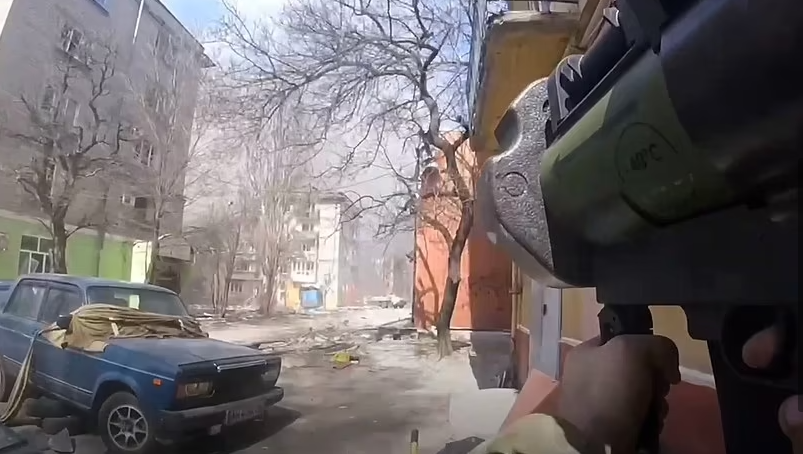 Wideo pokazuje ukraińskiego żołnierza z batalionu Azow, który uderza pociskiem w rosyjski pojazd wojskowy zaliczając trafienie bezpośrednie, wyrzucające w powietrze czarny pióropusz dymu.