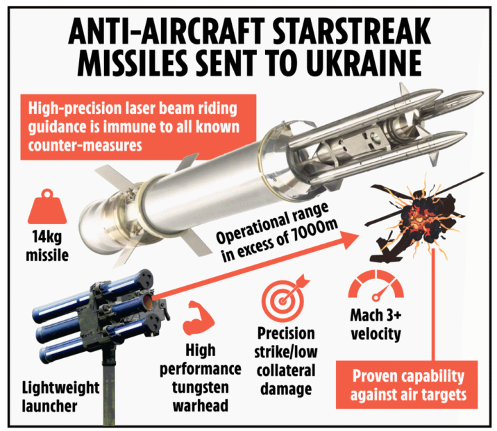 Brytyjski sekretarz obrony twierdzi, że siły ukraińskie od ponad trzech tygodni używają pocisków przeciwlotniczych Starstreak o dużej i niskiej prędkości.