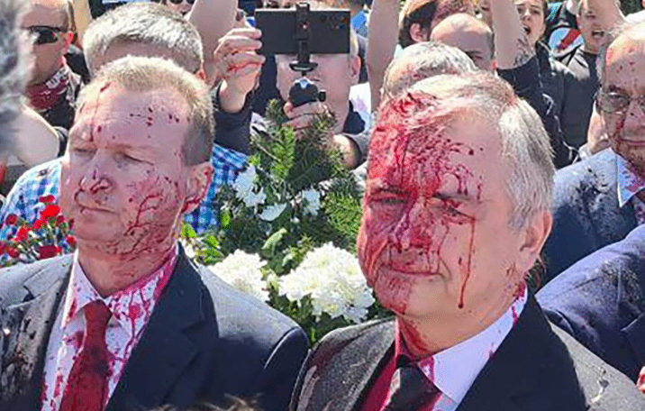 Ambasador Rosji oblany czrwoną farbą przed mauzoleum żołnierzy sowieckich