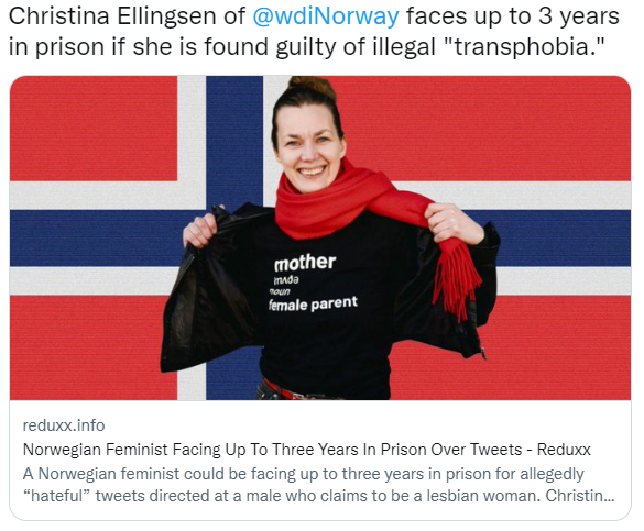 Norweska feministka jest przedmiotem dochodzenia za rzekomą krytykę aktywistki trans na Twitterze i obecnie grozi jej trzy lata więzienia za przestępstwa nienawiści.