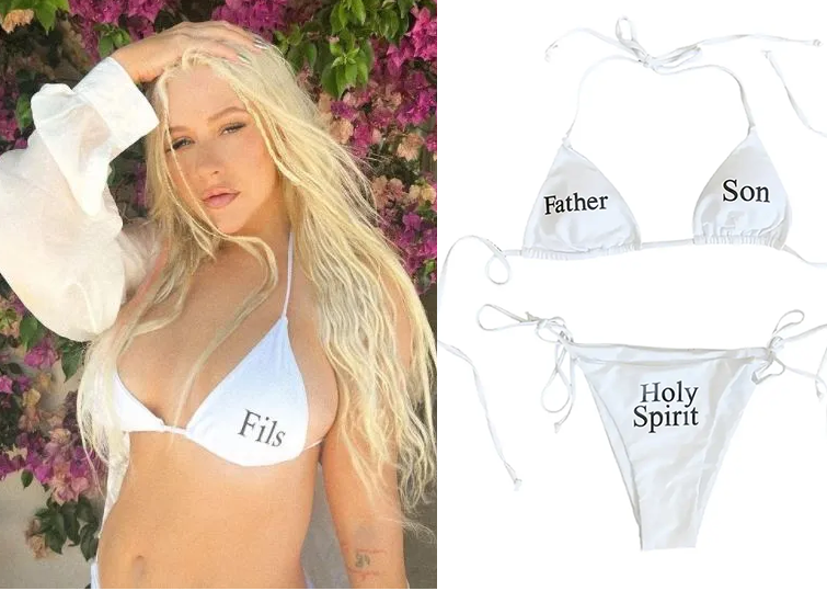Jak donosi “Page Six“, 21-letnia “sensacja” TikToku udostępniła, teraz usunięte zdjęcie, na Instagramie, przedstawiające siebie w bikini Świętej Trójcy (za AU$143) firmy Adidas-Praying, którego górna część ma nadrukowany napis „Ojciec” po jednej stronie i „Syn” po drugiej.