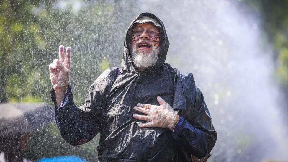 Policja wystrzeliła z armatek wodnych, aby rozproszyć tłumy – ale wielu przybyło przygotowanych w płaszczach przeciwdeszczowych i strojach kąpielowych.