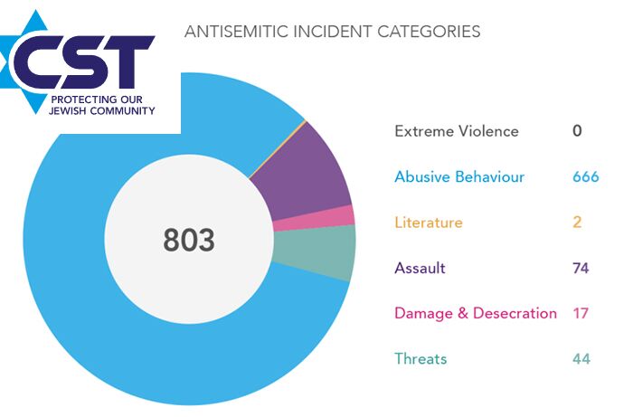 CST, które rejestruje incydenty antysemickie od 1984 r., stwierdziło, że w pierwszej połowie 2021 r. doszło do 1371 incydentów antysemickich, co było rekordem wszechczasów; 875 od stycznia do czerwca 2020 r.; i 911 w I półroczu 2019 roku.