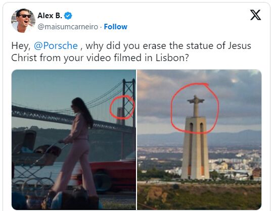 Jak podkreśliło kilku użytkowników mediów społecznościowych, marketerzy firmy postanowili wyedytować Cristo Rei z wideo, pozostawiając pusty cokół w stolicy Portugalii.
