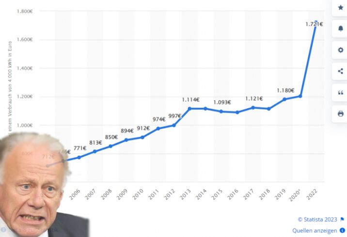 Od tego czasu ceny energii elektrycznej poszybowały w górę. Przeciętne niemieckie gospodarstwo domowe płaci obecnie za prąd prawie 1800 euro rocznie.
