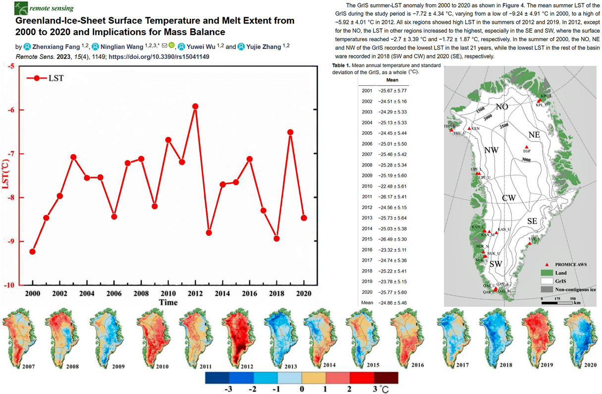 Od początku XXI wieku nie nastąpiła żadna zmiana netto średniej rocznej temperatury powierzchni pokrywy lodowej Grenlandii, ani netto zmiana procentu stopnia topnienia.