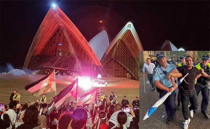 W Australii aresztowano mężczyznę, który niósł izraelską flagę w pobliżu wiecu zoreganizowanego w celu demomstrowania poparcia dla Hamasu, który odbywał się przy budynku Opery w Sydney. Uczestnicy skandowali „Pie….ć Izrael!”. Pie….ć Żydów!” i rzucali flarami w kierunky kultowego budynek.
