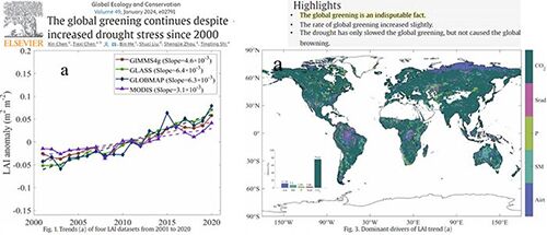 Korzystając ze znacznie bardziej wiarygodnych danych MODIS, naukowcy (Chen i in., 2024) mogą obecnie stwierdzić, że trend LAI w XXI wieku jest zdecydowanie pozytywny, a „globalne zazielenianie w latach 2001–2020 jest bezspornym faktem”.