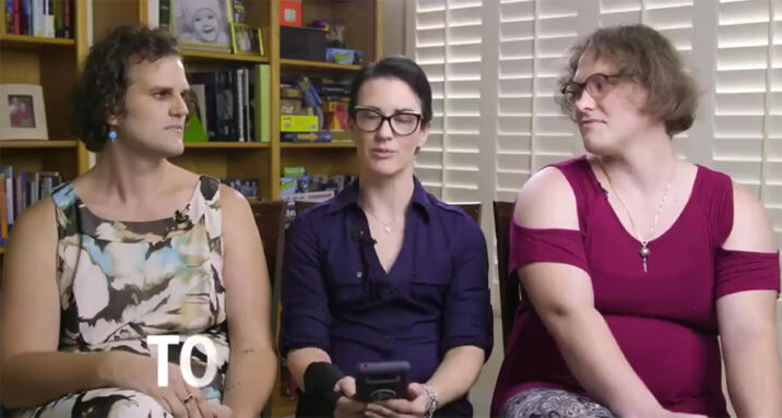Cała trójka, z USA,  jest w „związku poliamorycznym”, a wspomniana niebinarna niewiasta zdecydowała się związać się z dwoma mężczyznami, którzy przebierają się w damskie w ciuszki.