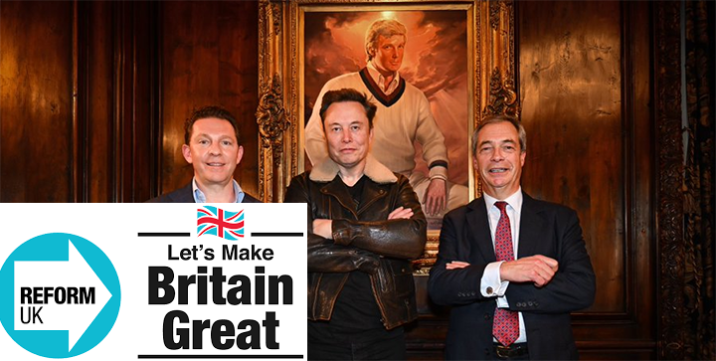 We wtorek po południu Nigel Farage, lider Reform, zamieścił zdjęcie siebie i Nicka Candy’ego, skarbnika Reform, podczas spotkania z miliarderem Tesli, z podpisem: „Brytania potrzebuje Reform”.