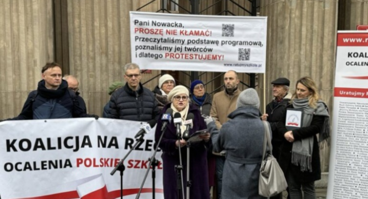 Przed siedzibą Ministerstwa Edukacji Narodowej w Warszawie przy al. Szucha 25 odbyła się dnia 25.02.2025 o godz. 11.00 konferencja prasowa zorganizowana przez Koalicję na Rzecz Ocalenia Polskiej Szkoły, podczas której zostało zaprezentowane stanowisko ekspertów wobec opublikowanego przez MEN 7 lutego tego roku projektu nowego rozporządzenia, w którym została podana delegacja ustawowa nowego przedmiotu edukacja zdrowotna oraz zapisy likwidujące przedmiot wychowanie do życia w rodzinie.