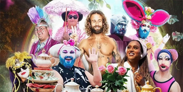 Fox News demonstruje plakat promocyjny z wydarzenia, na którym znajduje się wizerunek „Jezusa” z tatuażami otoczonymi przez drag queens.