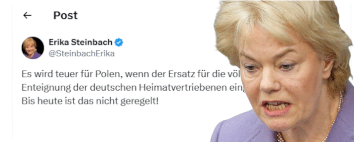 Wypowiedź Eriki Steinbach na platformie X, po słowach Karola Nawrockiego była naładowana jadem, nerwowa i zawierała otwartą groźbę domagania się reparacji za wygnanie Niemców z obecnych terenów Polski: